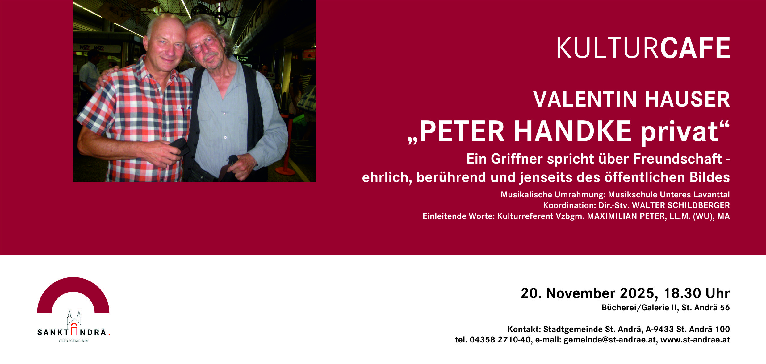Der Griffner Buchautor Valentin Hauser erzählt von der Freundschaft mit dem Literaturnobelpreisträger Peter Handke. Dabei soll nicht der große Literat und Schriftsteller im Vordergrund stehen, sondern der Mensch hinter dem öffentlichen Bild – jener Peter Handke, wie Hauser ihn seit Jahrzehnten persönlich kennt: abseits von Medien und literarischem Ruhm, als Freund und Griffner.